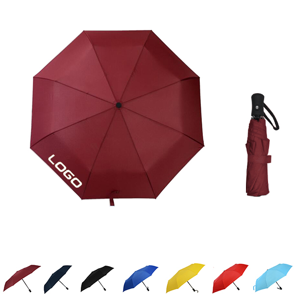 Automatic opening, 190T pongee canopy with matching color sleeve/case, 8 panels, fiberglass ribs and shaft, EVA handle.