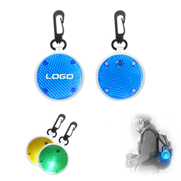 Safety pendant with LED strip, made of reflective PVC and nylon, 2 sides reflective, 1pc red LED light inside, 2 working modes: flashing and steady, powered by 1pc button battery inside, press button control, attached a plastic carabiner, can hook on your bag, backpack or trouser loop, keep you visible when running, walking or bicycling in the night.